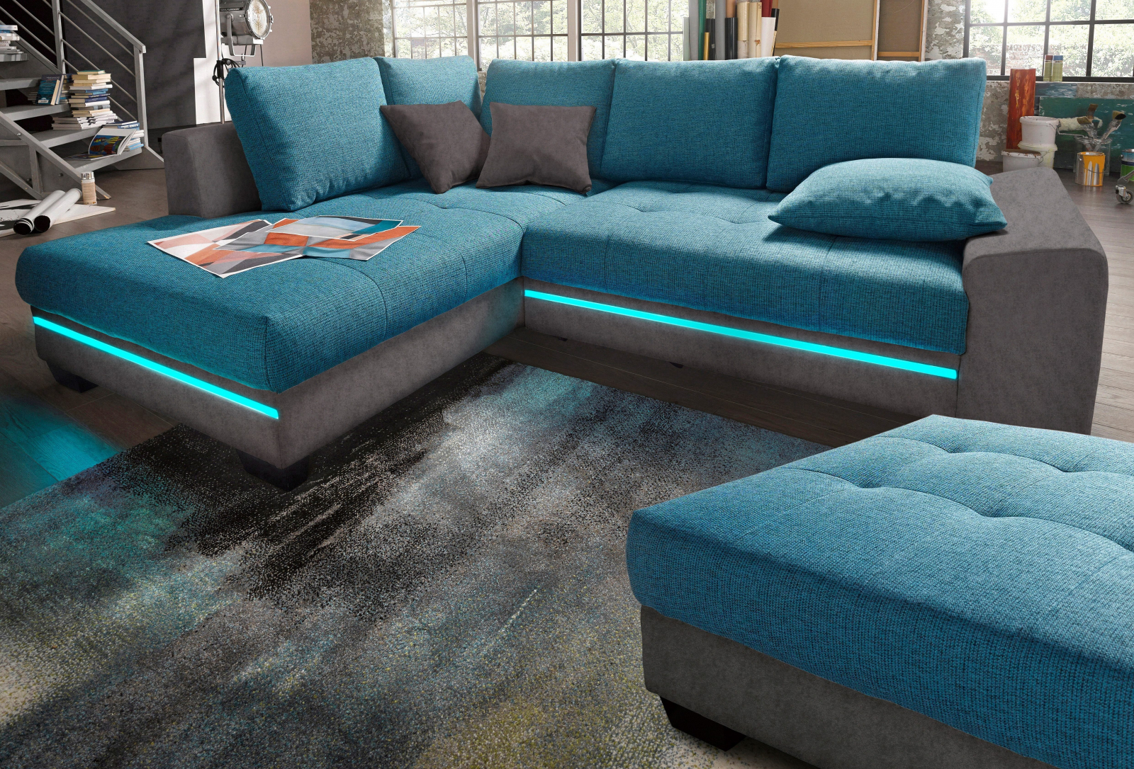 Relaxati-va intr-un confort elegant cu canapeaua noastra versatila de colt din microfibra de inalta calitate in antracit elegant si albastru deschis. Această canapea eleganta va va transforma camera de zi într-o oaza de confort si va va oferi refugiul perfect atat ziua, cat si noaptea.