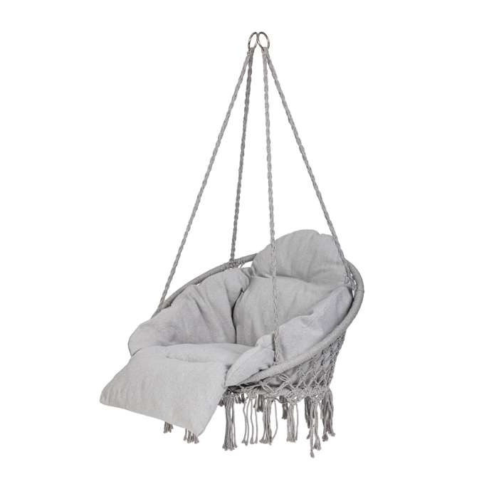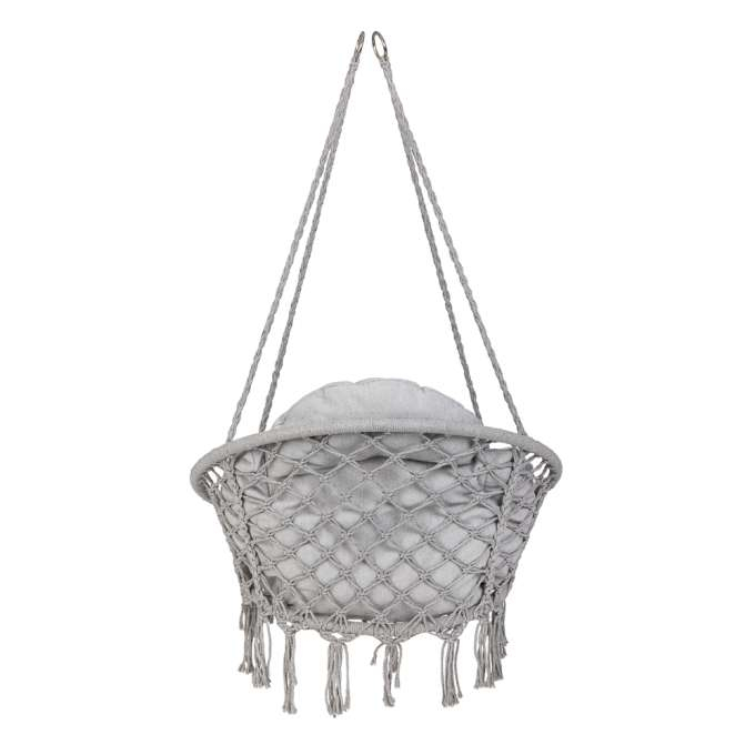 Material: funii de bumbac, cadru metalic, perna din bumbac si poliester